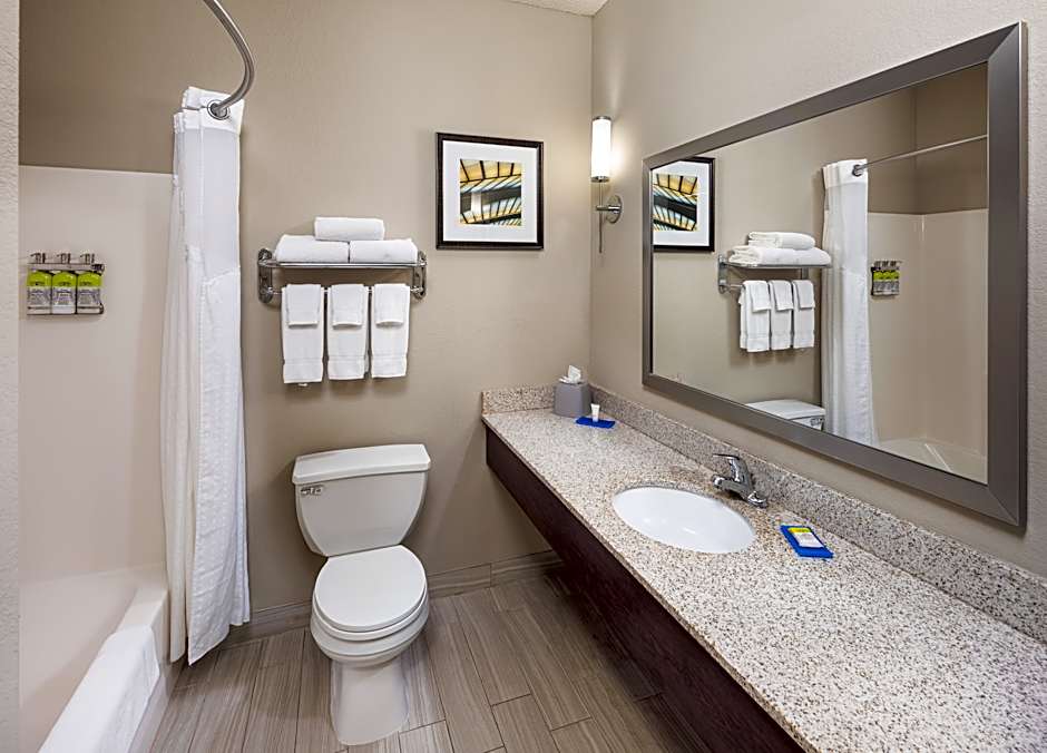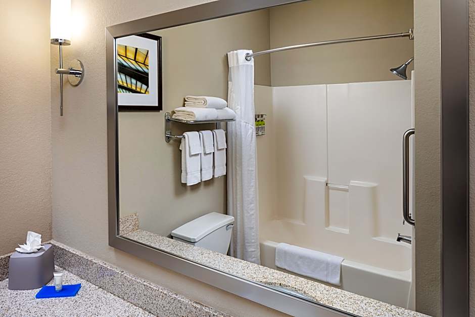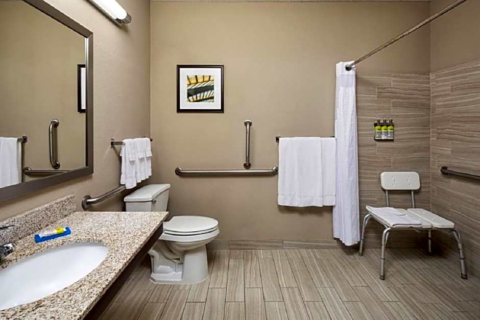Featuring a 27-inch flat-screen TV with HBO, this room also offers audiovisual alarms.